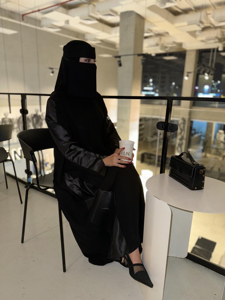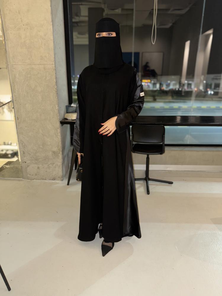 الاكمام :نصف قماش تفته لماع مع جوانب العبايه